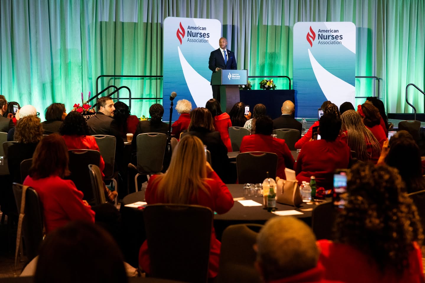 “In many ways, nurses will feel the consequences of policies that we’re seeing before anybody else,” he said. “And we continue to ask you to show up.”