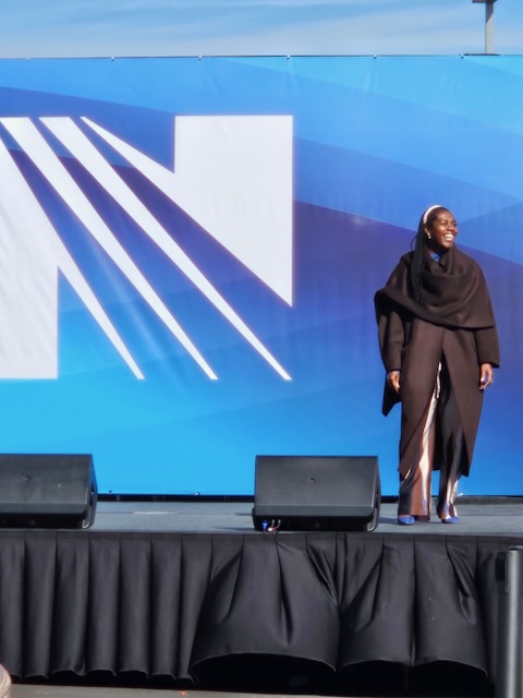 Corenza Townsend appears on stage during a public event tied to the opening of Norton West Louisville Hospital, highlighting nurse leadership in advancing healthcare equity.