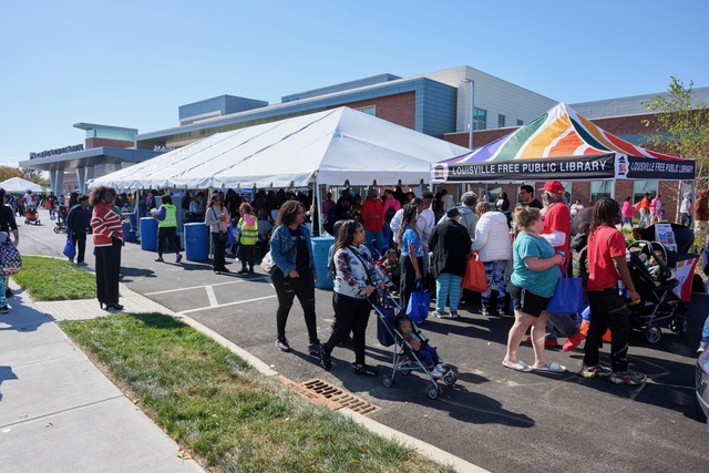 Community members gather outside Norton West Louisville Hospital during a public event, underscoring the hospital’s role as both a healthcare provider and neighborhood partner.